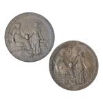 Deux MEDAILLES rondes en argent par Roty, Compagnie universelle du Canal maritime de Suez, le 17 novembre 1869 le canal maritime a été ouvert à la grande navigation D.: 4.3 cm Poids: 94 gr