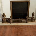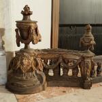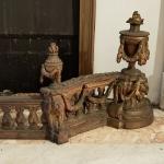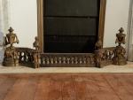 GALERIE DE FOYER et ses deux CHENETS en bronze doré à décor de guirlandes, balustrades et pots à feu Style Louis XVI H.: 38 cm L.: 124 cm