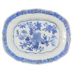 CHINE Plat ovale en porcelaine à décor bleu blanc de fleurs XVIIIème 21.5 x 26.5 cm