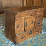 CHINE Meuble bas en bois exotique ouvrant par différents tiroirs et portes coulissantes H.: 48 cm l.: 60 cm P.: 29 cm
