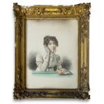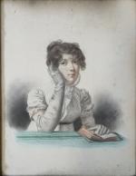 ECOLE FRANCAISE du XIXème Portrait présumé de la Générale Baronne Corvisart, née Henriette Pujol Estampe 38 x 28 cm à vue (nombreuses traces d'humidité)