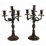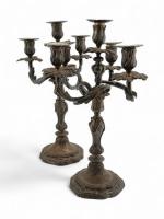 Paire de CANDELABRES en bronze argenté à quatre bras de lumière Style Louis XV H.: 43.5 cm