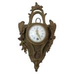 Petit CARTEL D'APPLIQUE en bronze à décor rocaille de fleurs, feuillage, le cadran émaillé Style Louis XV H.: 31 cm l.: 18 cm
