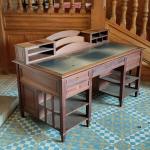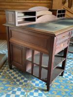BUREAU A GRADINS en acajou mouluré, ouvrant par de multiples tiroirs, casiers et trappes Style Louis XVI H.: 100 cm l.: 161 cm P.: 84 cm (insolé)