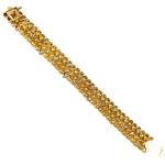 Bracelet articulé en or jaune 750 millièmes et platine 850 millièmes, les maillons entièrement gravés, certains sertis de diamants ronds de taille brillant.