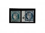 France n°4 + 4a, 25 c bleu + bleu foncé, oblitérés, TB, les deux timbres signés JF Brun, cote 140 (65+75)