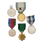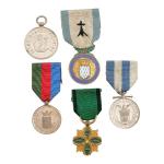 France Lot de 3 médailles de la Société des Sauveteurs : de la Ville de Rouen, attribuée à M. Le Mquis De Béthizy V. Prést D'Honn. Argent, ruban. Ø : 3 cm Poinçonnée ; de l'Indre et Loire, attribuée à Mr Le Marquis de Béthisy Président d'honneur 1866. Argent, ruban. Ø : 2,8 cm ; des Hospitaliers-Sauveteurs Bretons, non attribuée. Vermeil, émail, ruban brodé. Ø : 3,1 cm Poinçonnée. On joint 2 médailles : Encouragement au Bien, Dieu, Patrie, Famille, non attribuée. Vermeil, émail, ruban. Ø : 2,7 cm ; de Saint-François-Xavier, Société de secours mutuel, attribuée à Mr Mis de Béthisy. Métal blanc, SR. Ø : 3,3 cm