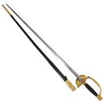 EPEE D'OFFICIER SUPERIEUR, modèle du 29 août 1816 et un fourreau, la garde orné de drapeaux entourant un écusson sous une couronne, la lame gravée "Manufacture Royale du Klingenthal" sur un côté et "Août 1822" sur l'autre côté