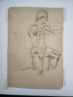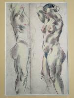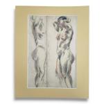 ECOLE ACADEMIQUE Etude de nus féminis Dessin 41.5 x 28 cm (pliures, déchirures, piqûres)