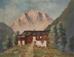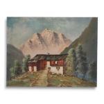 Julius WOLF (1909-1969) Oberbayern, paysage Huile sur isorel signée en bas à droite et datée 1945 50 x 65 cm