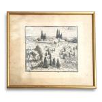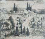 GRAVURE début XXème représentant un paysage 19 x 21 cm à vue (piqûres)