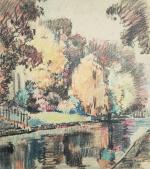Jan VAN BLOPPOEL [hollandais] (1920-1972) Paysage Pastel signé en bas à droite 34.5 x 31 cm