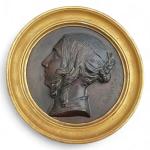 d'après Guillaume GROOTAERS (1816-1882) Portrait de dame de profil Bronze patiné et signé D.: 18 cm