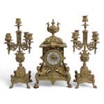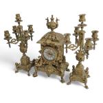 GARNITURE DE CHEMINEE en bronze comprenant une pendule et une paire de candélabres à cinq bras de lumière Deuxième moitié du XIXème H.: 51 cm