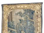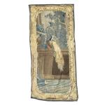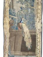 AUBUSSON Tapisserie formant portière représentant un paon sur le parapet d'une fontaine XVIIIème 230 x 112 cm (restaurations)