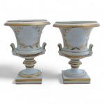Paire de VASES MEDICIS en porcelaine et biscuit à décor de filets or H.: 30 cm (petites usures à la dorure)