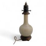 PIED DE LAMPE en céramique craquelée, les montures en bronze Fin XIXème H. totale: 47 cm (percé pour l'électricité, le col restauré)