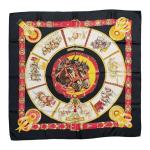 Laurence BOURTHOUMIEUX pour HERMES Paris Chevaux de trait, 1ere ed 1996 Carré en soie imprimée, 90x90, taches et décoloration Avec sa boîte