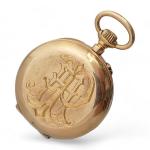 MONTRE de col en or jaune chiffrée au dos double cuvette or poids brut 24.8 g