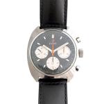 ENICAR CHRONOGRAPHE bracelet en acier Boîtier rond, fond vissé transparent, non signé Cadran noir avec index et...