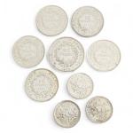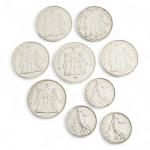 une PIECE 50 francs, 5 PIECES 10 francs argent, 3 PIECES 5 francs argent