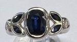 BAGUE en or blanc ornée d'un Saphir taillé en sertis clos pesant environ 2 carats environ épaulé de 4 saphirs taille navettes et de 2 diamants taille moderne, poids 7g85 TDD : 52