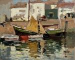 Paul Emile LECOMTE (1877-1950) L'Ile d'Yeu, bateau à la voile jaune devant le quai de Port Joinville Huile sur panneau 33 x 41 cm Bibliographie: - Revue 303, n° XX, reproduit p. 17