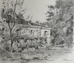 Paul Emile LECOMTE (1877-1950) Oulins, le château de la Rivière Dessin signé et situé en bas à droite 25.7 x 28.2 cm
