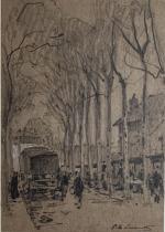 Paul Emile LECOMTE (1877-1950) Paris, scène de boulevard Dessin signé en bas à droite 16 x 11.2 cm