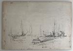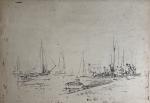 Paul Emile LECOMTE (1877-1950) L'Ile d'Yeu, Port Joinville Dessin double face 22.4 x 32 cm (traces d'humidité, légère déchirure)