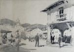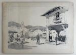 Paul Emile LECOMTE (1877-1950) Pays basque, le village Dessin rehaussé d'aquarelle 25.7 x 36 cm (traces d'humidité)