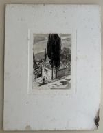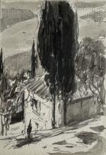 Paul Emile LECOMTE (1877-1950) Maison dans la vallée Dessin et lavis 15 x 10.5 cm (légères piqûres)