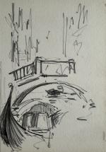 Paul Emile LECOMTE (1877-1950) Venise, gondole sous un pont Dessin 15 x 10.5 cm