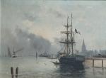 D. DAVID (fin XIXème - début XXème) Le port Huile sur toile signée en bas à droite 40.5 x 54.5 cm