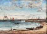 Charles LEDUC (1831-1911) Saint Nazaire, l'entrée du port Huile sur panneau signée en bas à droite 26 x 34.5 cm à vue (restaurations anciennes) Charles Leduc, nommé peintre officiel de la Marine