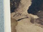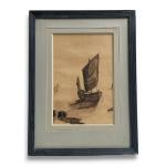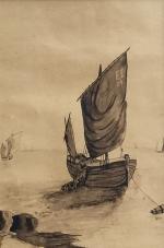 J. MORET (XIX-XXème) Bateaux Lavis signé en bas à gauche 37.5 x 25 cm à vue (piqûres)
