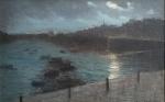Hippolyte Dominique BERTEAUX (1843-1926) Belle Ile, le port de Sauzon Huile sur toile marouflée sur carton signée en bas à droite, située au dos 35 x 55 cm