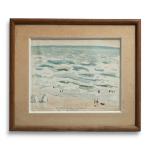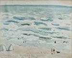 Jean LAUNOIS (1898-1942) Saint Jean de Monts, personnages sur la plage Aquarelle signée en bas à gauche 21.5 x 26.5 cm à vue (traces d'humidité)