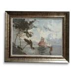 Amédée MARCEL-CLEMENT (1873- ?) Marine en Vendée, probablement Noirmoutier Huile sur isorel signée en bas à gauche, contresignée et titrée au dos sur une étiquette 46 x 61 cm