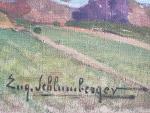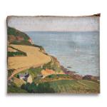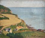 Eugène Jacques SCHLUMBERGER (1879-1960) Paysage maritime Huile sur toile signée en bas à droite, porte une étiquette annotée "derniers rayons à Tréboul" au dos 46 x 55 cm (petit enfoncement)