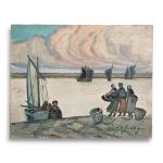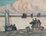 Jean Roger SOURGEN (1883-1978) Retour de pêche Huile sur panneau signée en bas à droite 19 x 24 cm
