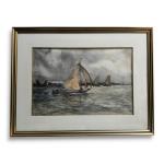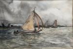 A. LECOMTE (XXème) Voiliers près des côtes Aquarelle signée en bas à gauche 48 x 72 cm à vue