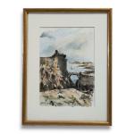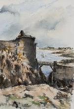 Chantal LE BLANC (XXème) Ile d'Yeu, le Vieux Château Aquarelle signée en bas à droite, située en bas à gauche 29 x 20 cm à vue