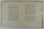 HOWEL, Thomas - CAPPER, James. Voyage en retour de l'Inde par terre et par une route en partie inconnue jusqu'ici par Thomas Howel. Suivi d'observations sur le passage dans l'Inde par l'Égypte et le grand désert par James Capper. Paris, De l'Imprimerie de la République, an V (1797). In-4, (4)-XVI-385-(3) p., bien complet des 2 cartes dépliantes. Broché sous couverture d'attente, à toutes marges (exemplaire non ébarbé), nom à l'encre sur la page de titre, manque de papier au dos et renforcé au ruban adhésif, 4 feuillets brunis en fin d'ouvrage, bon exemplaire.