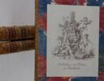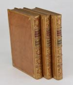 MARMONTEL, Jean-François. Poétique françoise. Pairs, Lesclapart, 1763. Édition originale. 2 tomes reliés en 3 volumes in-8, le second tome est en 2 parties reliées séparément, les 3 volumes ont un f. de faux-titre et un titre illustré d'une vignette de Cochin, 436 pp.-(2) ff. de table et errata ; 326 pp.-(3) ff. de privilège et errata ; pp. 327 à 555 - (1) p. de table. Reliure de l'époque en veau blond, dos orné de fleurons dorés, triple filet doré en encadrement des plats avec un fleuron d'angle, filets sur les coupes, roulette intérieure, tranches dorées, ex-libris du château de Chaltrait (Marne), très bel exemplaire en dépit d'un début de fente de 5 mm en tête du mors sup. du premier volume et de l'inversion par le relieur des tomaisons du second tome.