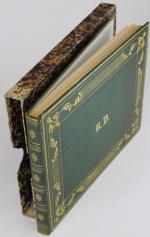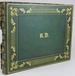 [Album de dessins] Famille DUGAS. Un album in-4 oblong (34,5 x 26 cm), vers 1830-1850, plus de 30 dessins crayon et encre, une aquarelle, paysages et monuments France dont Alsace, Bretagne, pays étrangers, Égypte, Angleterre, la plupart des dessins sont légendés, 4 sont signés et daté : Virginie Dugas 1854, C.D. 1844, J. D. 1842, Augustine Gallais 1843. Belle reliure de l'époque en maroquin vert à grain long, dos orné de fleurons et de filets dorés, plats encadrés d'une large bordure dorée, super ex-libris "R.D." sur le premier plat, étui, galeries de vers en tête des mors, coupes frottées.