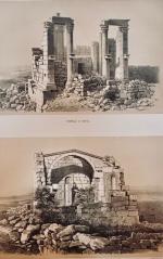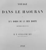 [Atlas] REY (Guillaume M. E.). Voyage dans le HAOURAN et aux bords de la Mer Morte, exécuté pendant les années 1857 et 1858 ATLAS - Paris, Bertrand, vers 1861. In-plano, demi reliure du temps. Cachet de bibliothèque effacé. Edition originale de ce bel atlas avec 26 planches dont 19 lithographies à deux teintes, certaines montrant 2 vues. Très rare.