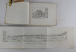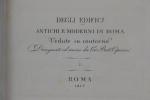 CIPRIANI, Giovanni Battista. Degli Edifici Antichi e Moderni di Roma. Vedute in contorno. Roma, 1817. 2 volumes in-8 oblong (22 x 15 cm), recueil entièrement gravé, (7) ff. de titres et sous-titres gravés, 238 gravures au trait de la Rome ancienne et moderne dont une vue générale dépliante. Broché, sous couverture papier bleue d'attente, étiquette de titre sur le premier volume qui annonce 240 planches, dos renforcés et titrés à l'encre, très bel état intérieur.