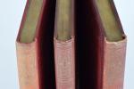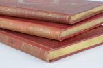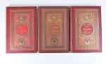 VERNE, Jules. 3 volumes cartonnage "aux initiales", second plat de type "c 2". Paris, J. Hetzel, (1875-1890). De la terre à la lune. Cartonnage havane, catalogue in-fine qui détaille les sommaires du "Magasin illustré" de 1875, un coin de feuillet du catalogue plié à la fabrication, très bel exemplaire. - Autour de lune. Cartonnage rouge, dos éclairci, rares rousseurs. - Cinq semaines en ballon. Percaline rouge, dos terni, coiffes frottées, second plat frotté, quelques rousseurs.