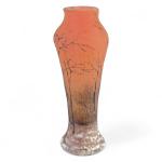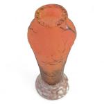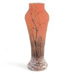 DAUM # Nancy Vase miniature en verre multicouche à décor dégagé à l'acide et émaillé d'un paysage arboré à la neige, signé au-dessous H.: 5.5 cm